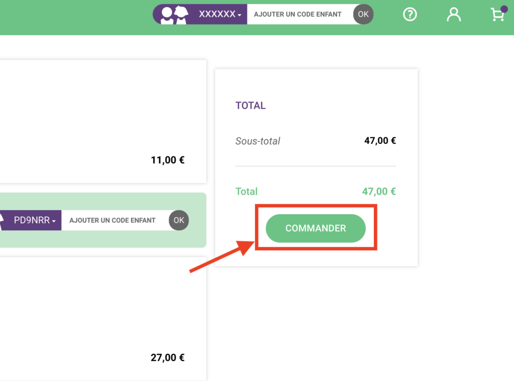 Vérifiez bien l’ensemble de votre commande, puis cliquer sur le bouton « COMMANDER« .